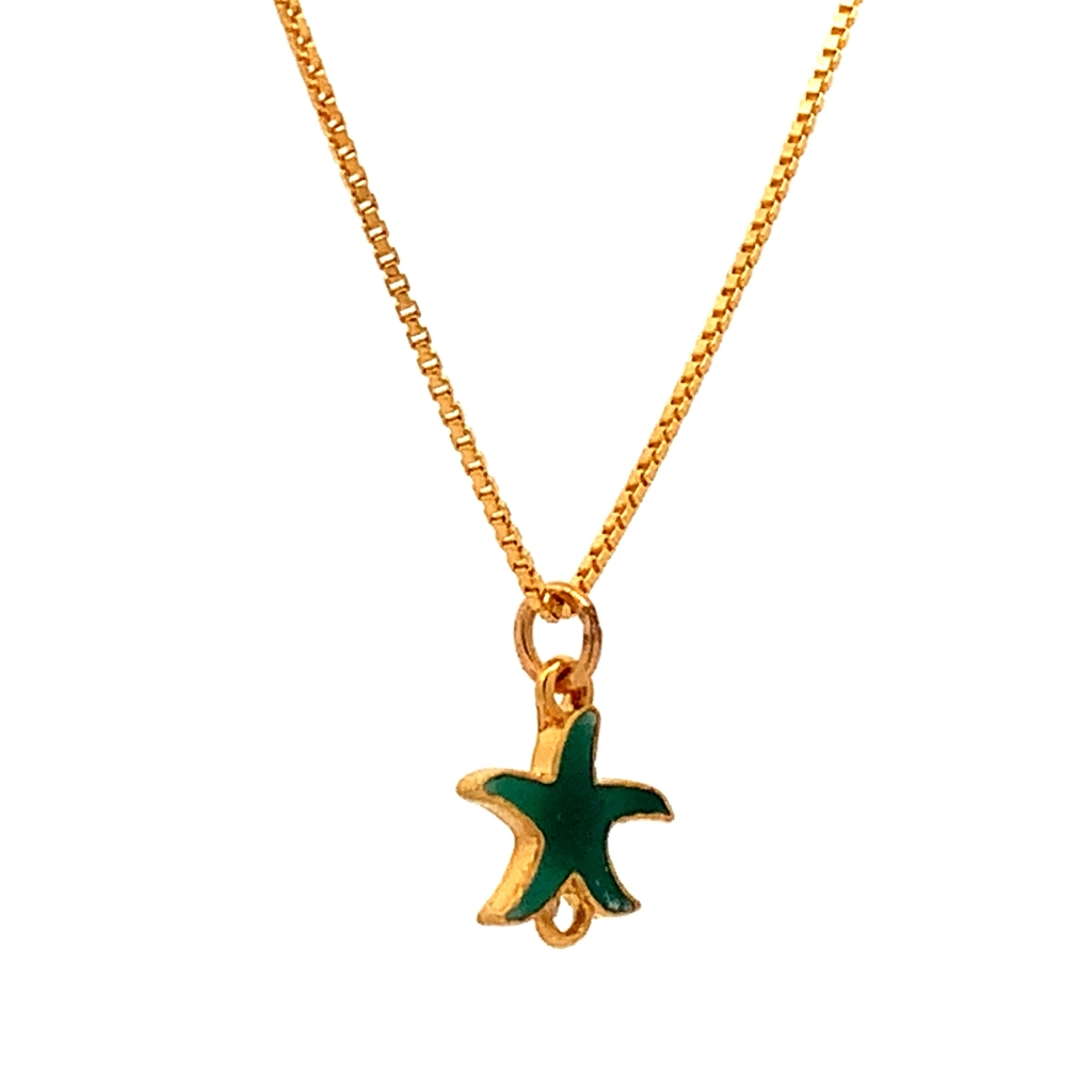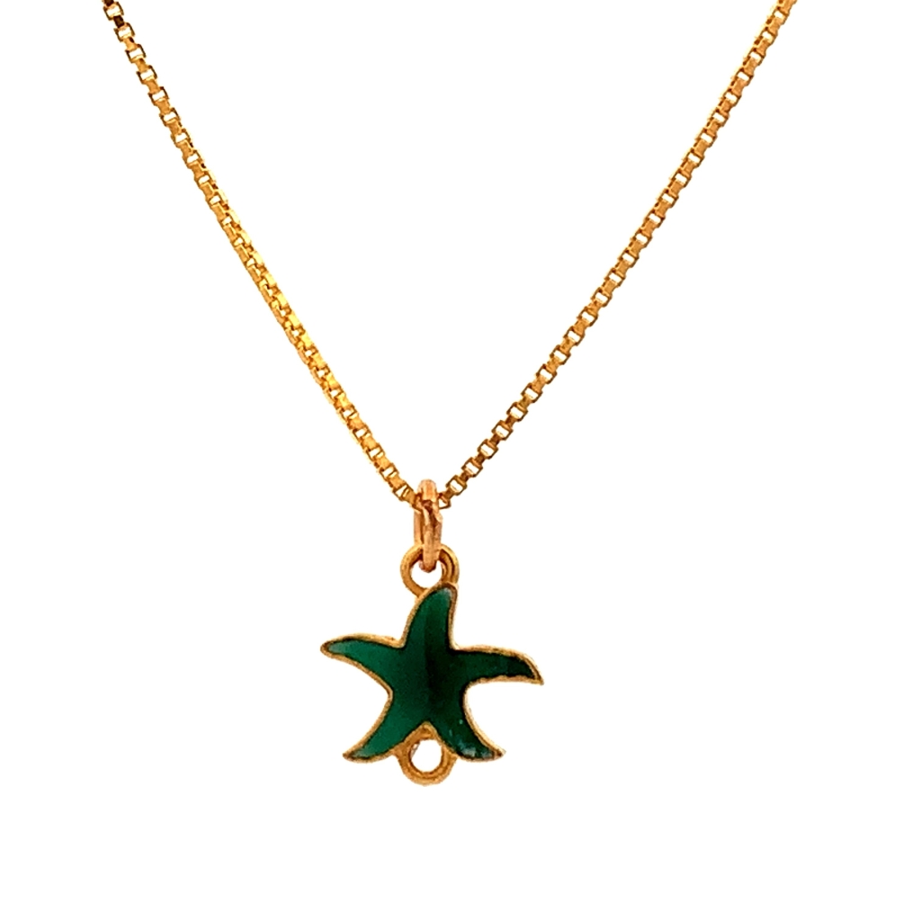 DELICATE STARFISH GREEN ENAMELLED PENDANT AND CHAIN Chain