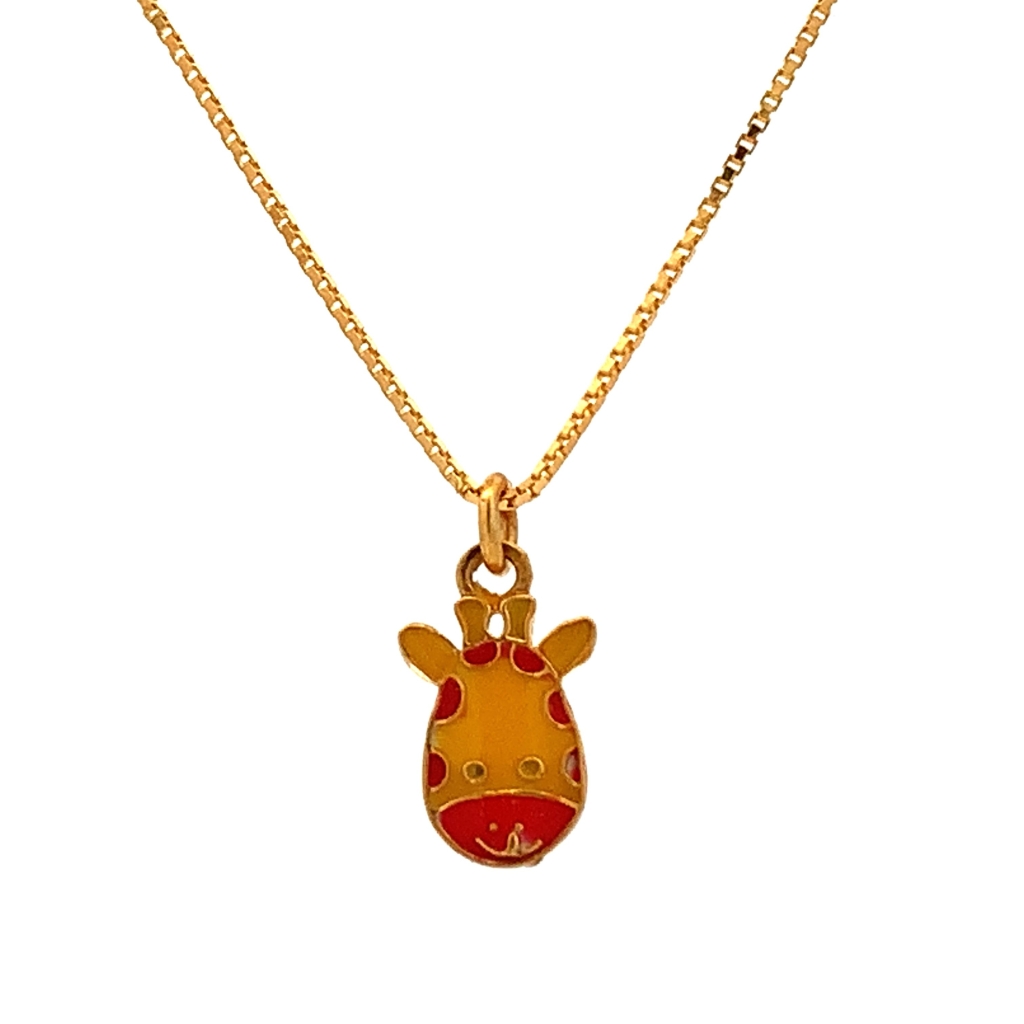 GIRAFFE FACE ENAMELED GOLD PENDANT WITH CHAIN Chain